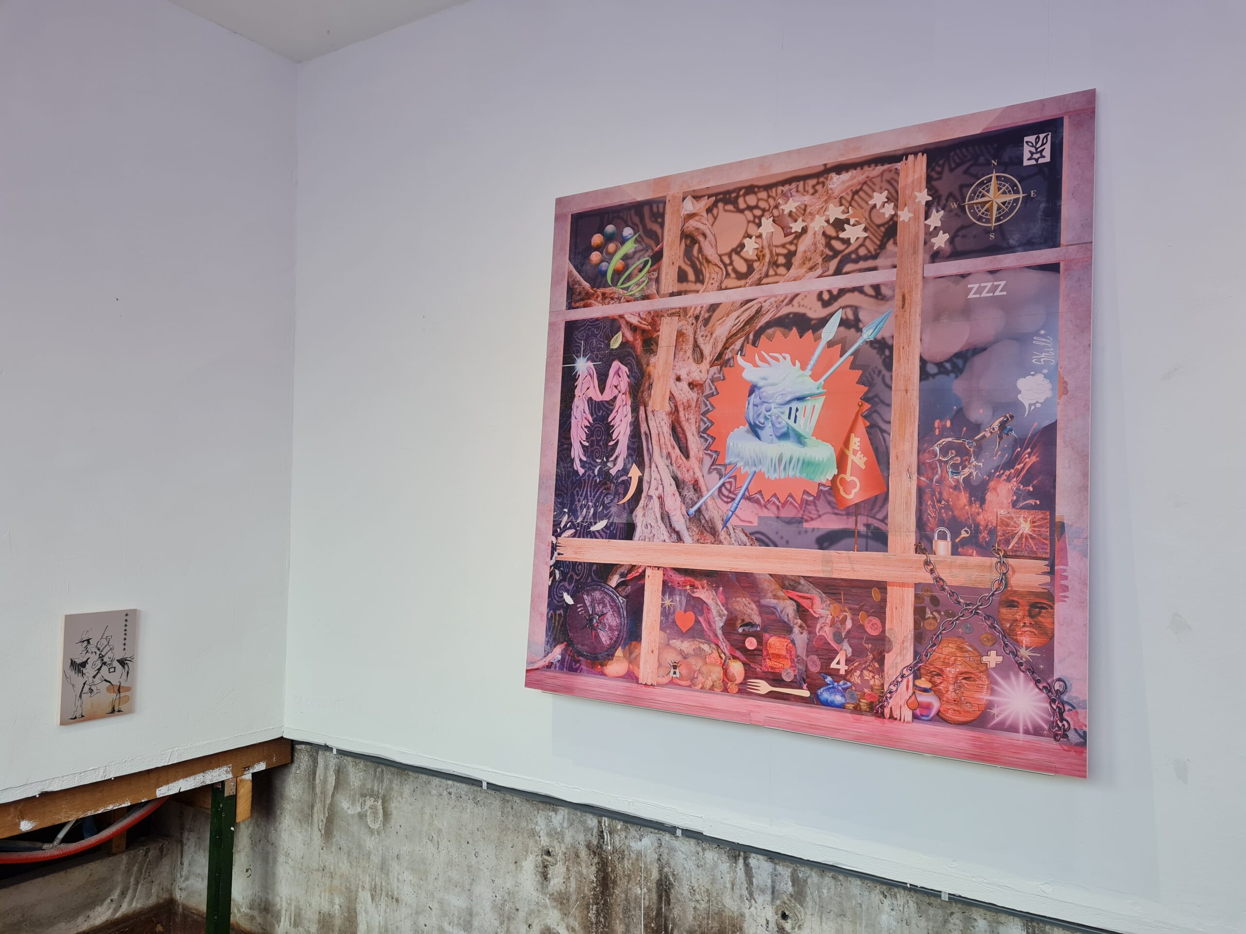 Dump inventory is an exhibition feauturing a selection of digital prints on wood. These prints depict various digital and non digital items that are typical in certain role playing experiences like video games, dungeons and dragons, but also local heraldry of historical places in the Netherlands. These works aim to show the grandeur and beauty but also the fragile nature of identity forming which revolves around aquiring items, statistics and status, as the digital items that these works are inspired by often get lost in time on an abandoned video game server. What then is left of your identity, something that has required so much time and energy.